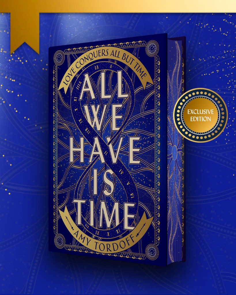 My debut novel, All We Have is Time, will be out in the world for anyone to read on February 24, 2026 in the US. Two days later, on the 26th of February, it will hit shelves in the UK, including this stunning Waterstones exclusive edition with sprayed edges and a bonus chapter!